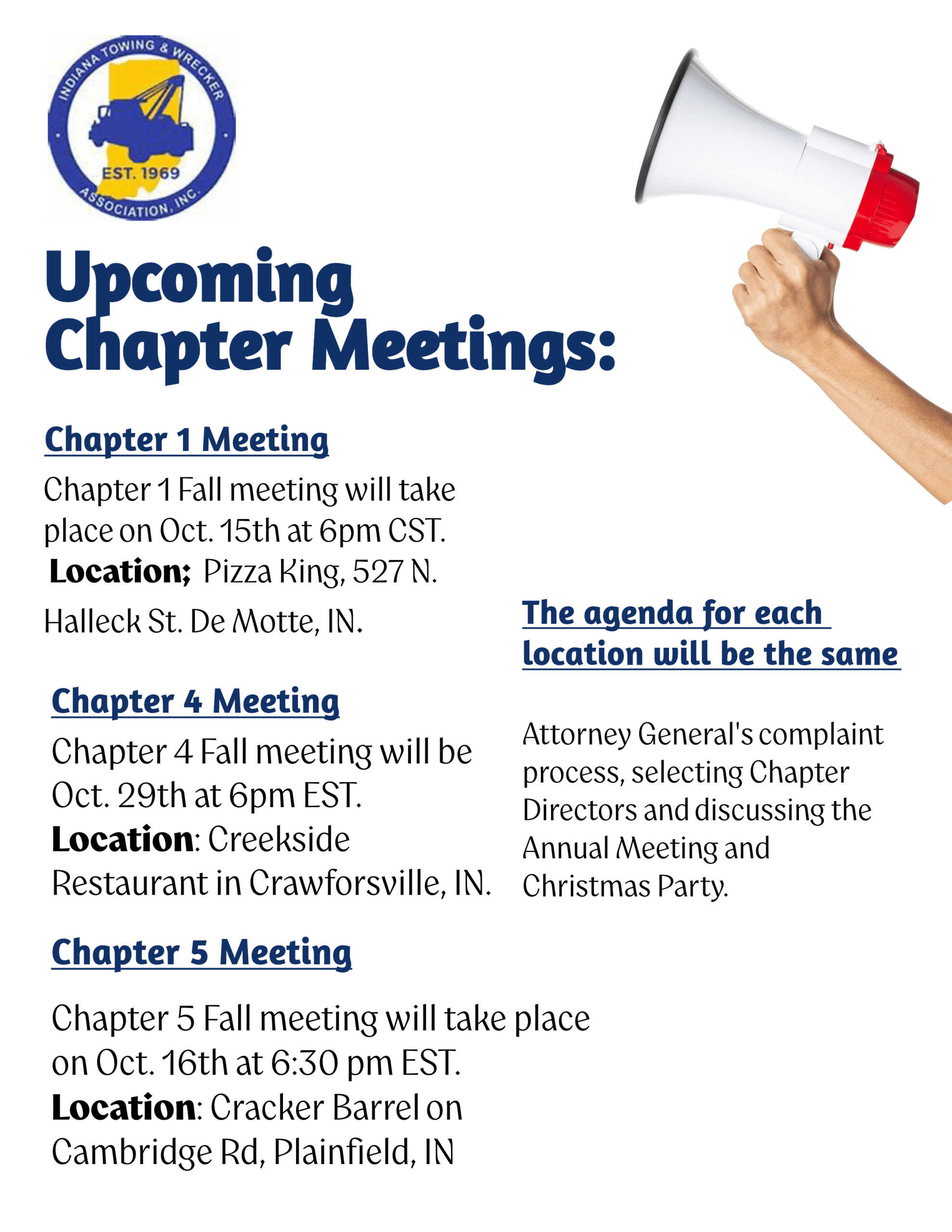 The Indiana Towing and Wrecker Association (ITWA) was incorporated on February 17, 1969, by Henry Cristofori, Robert Mullen and Roger Kinman. The ITWA’s purpose is to aid in the establishment and maintenance of laws and regulations that support the towing industry, collect and distribute pertinent information, and protect the industry’s interests.